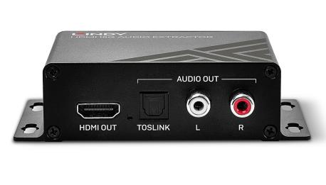 Estrae audio stereo o multicanale digitale ottico (5.1 o 7.1), da un segnale passante HDMI 2.0 a 18G HDCP 2.2 e HDR. Connessioni: HDMI In e Out, audio analogico RCA, audio digitale Toslink ottico. Dimensioni dispositivo (LxAxP): 104.4x64x28.3 mm. Alimentatore singolo 5 V DC 1.