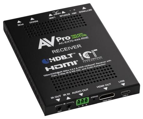 Ricevitore di segnale HDBaseT. Permette di trasmettere il segnale HDBaseT per medio-lunghe distanze. Risoluzione massima fino a 4K 60Hz 4:4:4. Risoluzione VESA fino a DCI (4096x2160). Risoluzione HDR10, HDR10+, HLG. Formati audio supportati: PCM 2.0 canali, LPCM 5.1 e 7.1, Dolby Digital, DTS 5.1, Dolby Digital Plus, Dolby TrueHD, DTS-HD Master Audio, DTS-X e Dolby Atmos. Larghezza di banda pari a 18 Gbps non compresso. Distanza massima di 70 m (4K) o 100 m (Full HD). Certificato HDCP (HDCP 2.3 e precedenti). Consumo energetico totale di 12W. Dimensioni: 13.2x10x1.8cm. Peso: 0.23 kg Colore: nero.