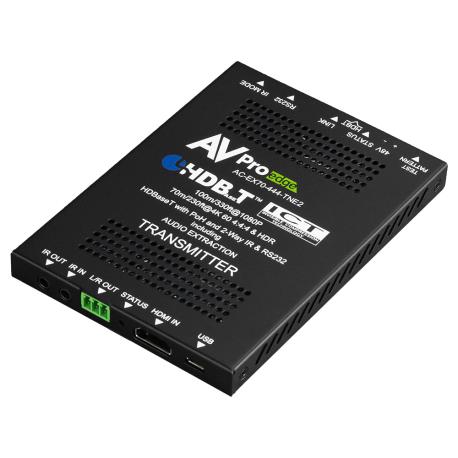 Trasmettitore di segnale HDBaseT. Permette di trasmettere il segnale HDBaseT per medio-lunghe distanze. Risoluzione massima fino a 4K 60Hz 4:4:4. Risoluzione VESA fino a DCI (4096x2160). Risoluzione HDR10, HDR10+, HLG. Formati audio supportati: PCM 2.0 canali, LPCM 5.1 e 7.1, Dolby Digital, DTS 5.1, Dolby Digital Plus, Dolby TrueHD, DTS-HD Master Audio, DTS-X e Dolby Atmos. Larghezza di banda pari a 18 Gbps non compresso. Distanza massima di 70 m (4K) o 100 m (Full HD). Certificato HDCP (HDCP 2.3 e precedenti). Consumo energetico totale di 12W. Dimensioni: 13.2x10x1.8cm. Peso: 0.23 kg Colore: nero.