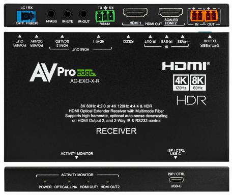 Kit di estensione di segnale HDMI in fibra ottica. Permette di trasmettere il segnale HDMI per lunghe distanze. Composto da un trasmettitore e un ricevitore. Risoluzione massima fino a 8K 60 Hz 4:2:0 o 8K 30 Hz 4:4:4 o 4K 120 Hz. Risoluzione HDR10, HDR10+, Dolby vision, HLG. Formati audio supportati: PCM 2.0 canali, LPCM 5.1 e 7.1, Dolby Digital, DTS 5.1, Dolby Digital Plus, Dolby TrueHD, DTS-HD Master Audio, DTS-X e Dolby Atmos. Larghezza di banda pari a 40 Gbps non compresso. Distanza massima di 300m. Certificato HDCP (HDCP 2.3 e precedenti). Consumo energetico totale di 2.5W. Dimensioni: 8x14x1.5 cm. Peso: 0.25 kg Colore: nero.