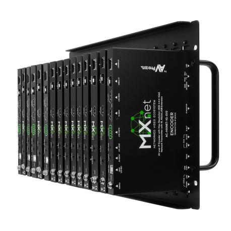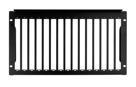 Piastra per rack sulla quale montare e organizzare ogni tipo di ricevitore/trasmettitore SDVoE over IP AC-MXnet-1G. Fino a 15 dispositivi diversi che, organizzati in questo modo, occupano solamente 6 unità rack. Colore: nero.