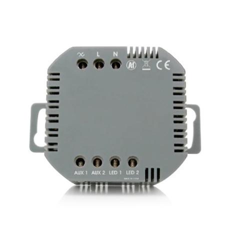 Dimmer wireless compatto da incasso adatto per scatole quadrate o tonde da muro. Supporta un carico massimo di 200 W. Compatibile con lampade ad incandescenza, alogene, magnetiche a bassa tensione, elettroniche a bassa tensione, fluorescenti, fluorescenti compatte e a led. Rilevazione automatica del carico complessivo, controllo del carico, spegnimento del carico se oltrepassa la soglia massima o in presenza di cortocircuiti per evitare danni al dispositivo. Misurazione dell'utilizzo complessivo dell'energia elettrica e report per ogni carico collegato, permettendo alle applicazioni di gestione dell'energia di monitorare e controllare individualmente ogni lampada. Supporto per installazioni elettriche già completate o datate, fornendo il controllo del dimmer totalmente attraverso il protocollo wireless Zigbee.