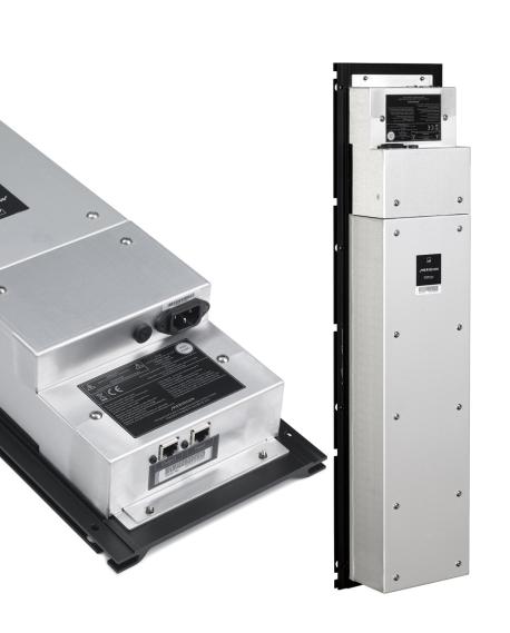 Ingressi: SpeakerLink. Uscite: SpeakerLink. Prestazioni: Peak SPL: 1 m 115 dB, frequenza di risposta 38 Hz 40 kHz. Amplificatori: 3 paia di amplificatori classe D, ogni coppia eroga in Bridge 100 W a 8 ohm. Bass Drivers: 160 mm. Mid Drivers: 100 mm. Tweeter: Diffusore al berillio con tecnologia a diffrazione. Comandi del pannello frontale: interruttore a bilanciere on/off, portafusibile, finestra IR. L'interruttore a bilanciere seleziona il funzionamento del canale sinistro-centro-destra. L'indicatore LED mostra lo stato di alimentazione. Alimentazione: 230 V. Dimensioni (AxLxP): 800x203x102 mm. Peso: 11 kg.