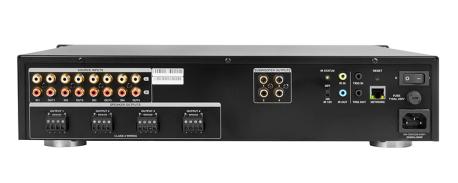 Amplificatore multizona classe D a 8 canali con DSP e equalizzatore Parametrico a 10 bande utilizzabile via browser con funzioni di matrice amplificata e uscita linea per sub dedicata ad ogni zona. Potenza d'uscita: 8x 50 W/8 ohm, 8x 100 W/4 ohm, 4x 200 W/ohm (bridged). Consumo di potenza massimo 800 W, Sensibilità d'ingresso: 1 V rms, risposta di frequenza: 20 Hz 20 kHz, ±2 dB. Input: 1 RJ45 (10/100Mbps), 12 V Trigger IN/OUT, IR IN/OUT. Audio Input: Audio Analogico 4x RCA Stereo. Audio Output: Audio Analogico OUT 4x RCA Stereo, 4 subwoofer RCA output. Audio amplificato: 4 connettori Phoenix L+R. Dimensioni (LxAxP): 483x424x89 mm. Peso: 8,5 kg. Compatibile con il sistema cloud OVRC. Disponibili driver per sistemi di controllo Control4, Crestron, RTI, Elan.