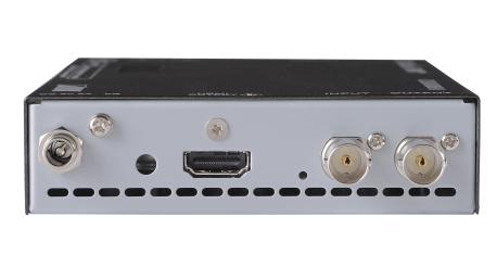 Ricezione sucavo coassiale di: 1 HDMI/DVI, 1 audio stereo analogico de-embeddato, 1 seriale RS-232 bidirezionale. E' presente un'uscita BNC per collegare altri ricevitori (max 15). Max distanza di ricezione di 210 m su cavo coassiale digitale a 75 ohm tipo Canare L-7CHD (o equivalente). Segnale HDMI con TMDS clock da 25 a 165 MHz, profondità colore 8 bit, audio LPCM fino a 8 ch. Emulazione EDID in ingresso, generatore test audio/video, connection reset, anti-snow. CEC, HEC e ARC non sono supportati. Connettore HDMI con morsetto di ritenzione cavo. Configurazione tramite 3 pulsanti e display a 3 cifre. Indicatori LED per: alimentazione, link, segnale, HDCP e blocco tastiera. Connettori: 1x HDMI, 2x RCA, 1x DBsub, 2x BNC. Dimensioni (WxHxD): 106x28x150 mm. Alimentatore esterno multitensione da 5 V DC 3 A assorbimento 6 W.