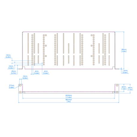 Dimensione di 1U e profondità di 180 mm. Permette di ospitare apparati alti 42 mm: due half-size o fino a quattro quarter-size. All'occorrenza possono essere usati fino a tre RM-SBP.