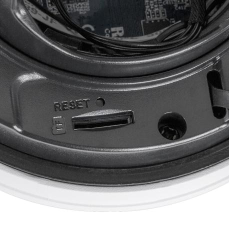 La telecamera è dotata di microfono integrato, supporto per schede microSD fino a 256?GB per registrazione locale, motion detection e analisi video intelligente con rilevamento avanzato di persone e veicoli. Il corpo compatto e discreto in formato Dome (Ø110?mm × 60?mm) è certificato CE, FCC, ETL e conforme allo standard NDAA. Il prodotto è coperto da una garanzia limitata di 3 anni. Colore bianco