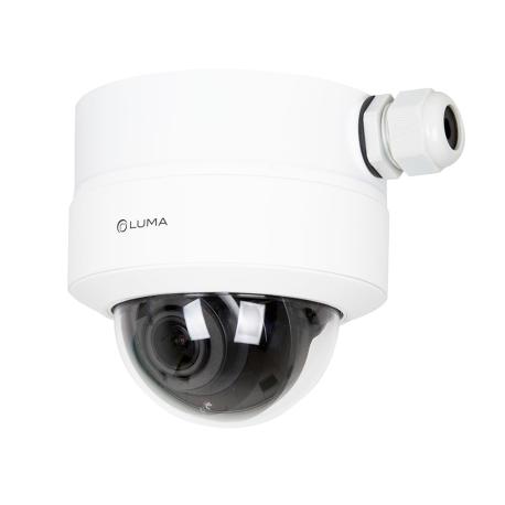 La scatola di giunzione LUMA LUM-A20-JB-FX-BTW è progettata per il montaggio a parete di telecamere Varifocal Dome della serie Luma X20. Realizzata in alluminio verniciato bianco, offre protezione IP67 contro polvere e acqua, garantendo un'installazione ordinata e protetta. Compatibile con i modelli LUM-220-IP-TFW e LUM-820-IP-TFW.