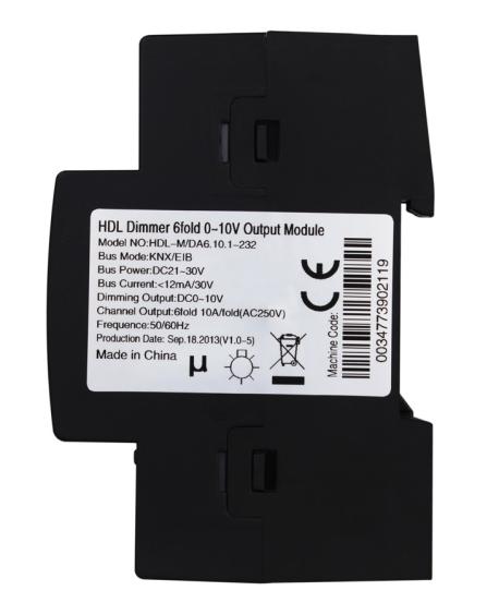 Dimmer Ballast 6CH 10 A, montaggio su guida DIN, 10 A per canale, entrambi 110/250 V AC, 50-60 Hz. I tipi di controllo includono sia l'ingresso che l'uscita, quindi è possibile collegare un ballast di tipo ad assorbimento e uscita a questo modulo.