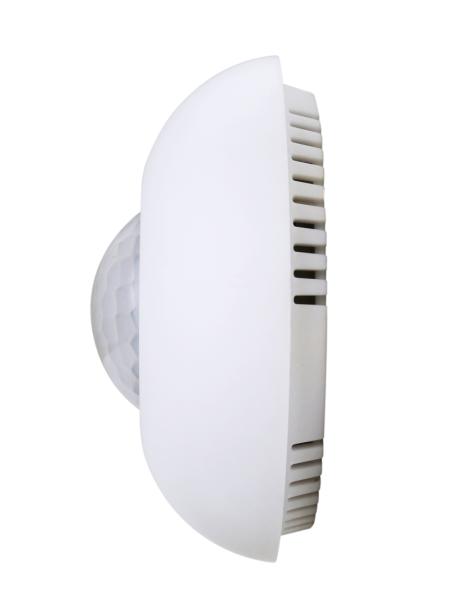 Sensore PIR e Lux a montaggio superficiale, terminale KNX standard, include sensore di movimento, sensore Lux, sensore di temperatura, contatto pulito e telegrammi esterni, campo di rilevamento del movimento H: 2,5 m P: 8 m
