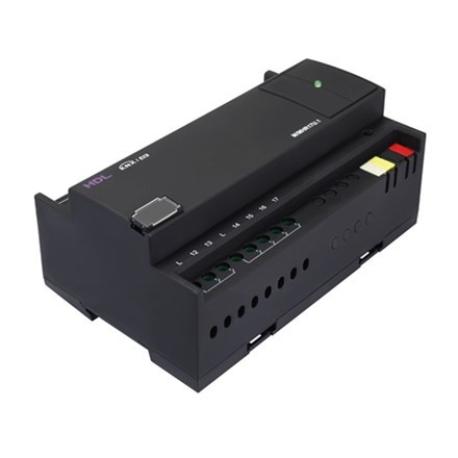 Attuatore misto 17CH, montaggio su guida DIN, tot 17CH (relè TV8 12CH 5A, relè a scatto magnetico 5CH 10 A), entrambi 110/250 V AC, 50-60 Hz, utilizzato per il controllo di illuminazione, tende e FCU. Corrente ausiliaria: 97 mA/30 V CC.