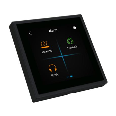 KNX Tile Display è un pannello di controllo multifunzionale per l’impianto domotico. Con lo schermo LCD da 3,5” e il controllo touch a schermo intero, diventa una soluzione ottimale per controllare l'illuminazione, le tende, gli scenari, l'aria condizionata/FCU, il riscaldamento a pavimento, la musica e l'aria fresca in modo intuitivo. Sensore di temperatura e umidità integrato. Sensore di prossimità incorporato, retroilluminazione LCD regolabile. Funzione blocco schermo e orologio. Pagine dedicate per illuminazione, tende, scenari, AC/FCU, riscaldamento a pavimento, musica e controllo dell'aria fresca. Nella pagina illuminazione è possibile impostare un totale di 20 tasti di controllo: Switch, dimmer, RGB e CCT. Fino a 20 scene supportate.Supporta l'aggiornamento on-line. Necessita l'interfaccia di alimentazione M/PTCI2P.1 (non inclusa). Bus power 15 mA. Dimensione: 76x76x11 mm. Frame non incluso.