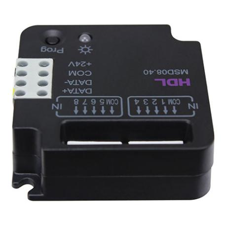 L’HDL MSD08.40 è un modulo di ingresso a 8 zone progettato per sistemi di automazione Buspro, ideale per integrare pulsanti, sensori e comandi multifunzione in impianti residenziali e commerciali. Il dispositivo accetta numerosi tipi di comandi come interruttori meccanici, single on/off, combinazioni, multifunzione e parallel switch, offrendo grande flessibilità per la gestione di scenari, sequenze, controllo luci, canali broadcast, tende, moduli di sicurezza e sistemi avanzati di supervisione.