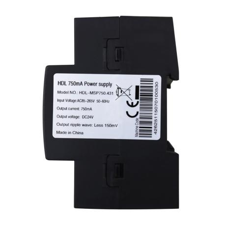 Il modulo HDL MSP750.431 è un alimentatore per sistemi Buspro progettato per fornire una tensione stabile DC 24V con una corrente massima di 750mA, garantendo alimentazione affidabile ai dispositivi del sistema di automazione. Supporta due tipologie di connessione, mantenendo invariata la capacità totale di uscita. Grazie all’ampio intervallo di ingresso AC 85–260V (50/60Hz), offre grande flessibilità d’installazione in contesti residenziali e commerciali. Integra protezioni contro cortocircuiti e sovracorrenti, assicurando un funzionamento sicuro e riducendo il rischio di danni ai moduli collegati. Il ripple in uscita è inferiore a 150mV, garantendo una qualità di alimentazione pulita e stabile. L'installazione su guida DIN da 35 mm lo rende adatto a quadri elettrici moderni. Con materiali resistenti come Nylon e PC, rappresenta una soluzione affidabile e duratura per l’alimentazione dei sistemi HDL Buspro. Dimensioni: 72×90×66mm.(LxAxP). Peso: 188,5g