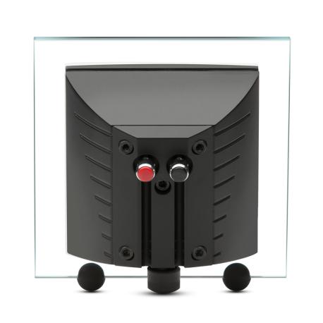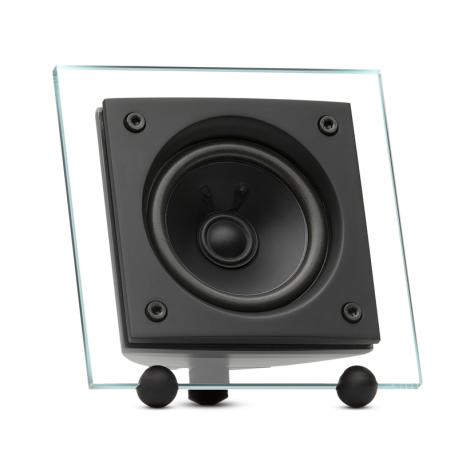 Diffusore compatto per sistemi surround 2.1, 5.1 o 7.1. Amplificazione consigliata:30-80 W. Potenza di picco: 150 W (Senza clipping). Impedenza 8 ohm/4 ohm. Sensibilità: 87 dB SPL (2.83 V/1 m): 180 Hz 20 kHz (±3 dB). Driver full range:1x 80 mm/3", Athom LD 80. Involucro in vetro e finiture in alluminio. Colore: nero o bianco. Staffa a muro e piedini per appoggio su tavolo inclusi (staffe a pavimento opzionali). Dimensioni (LxAxP): 125x125x67mm. Peso: 1 kg, finitura nera.