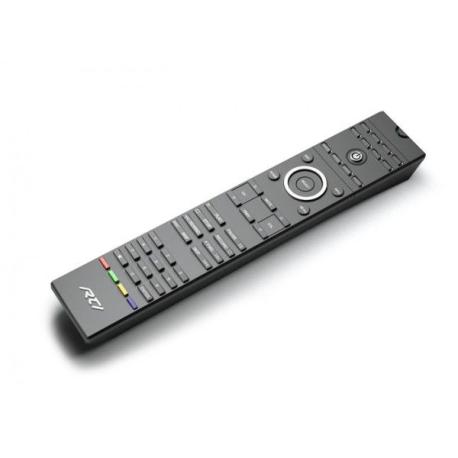 Telecomando a tastiera con 40 tasti programmabili, ideale per controllo rapido di sorgenti e comandi frequenti. Doppia trasmissione RF selezionabile (433 MHz e 2,4 GHz ZigBee) e trasmissione IR; possibilità di inviare IR e RF anche con un’unica pressione. Retroilluminazione attivabile automaticamente tramite tilt switch; supporto modalità “Companion” per utilizzo in abbinamento a interfacce/app compatibili. Alimentazione tramite batteria ricaricabile Li-Ion e docking station di ricarica inclusa nel sistema. Dimensioni (LxPxH): 4,8x2,3x25,4 cm; Peso: 0,20 kg